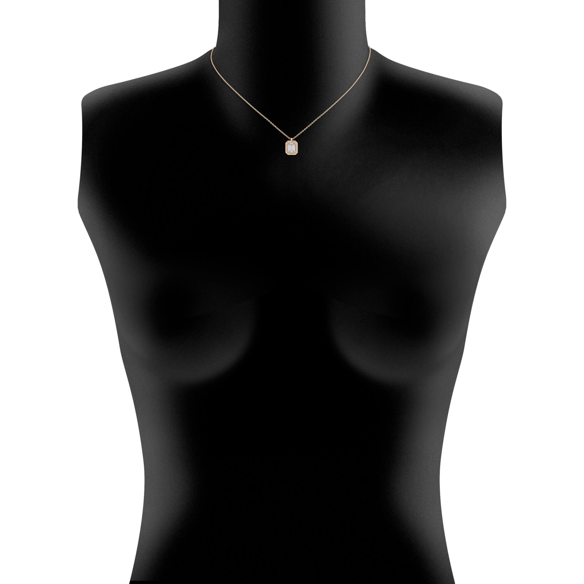 Collier aus 750/- Rotgold mit einem Diamanten im Emerald-Schliff (1,52 ct.) und Brillanten (0,08 ct.)Länge 42 cm