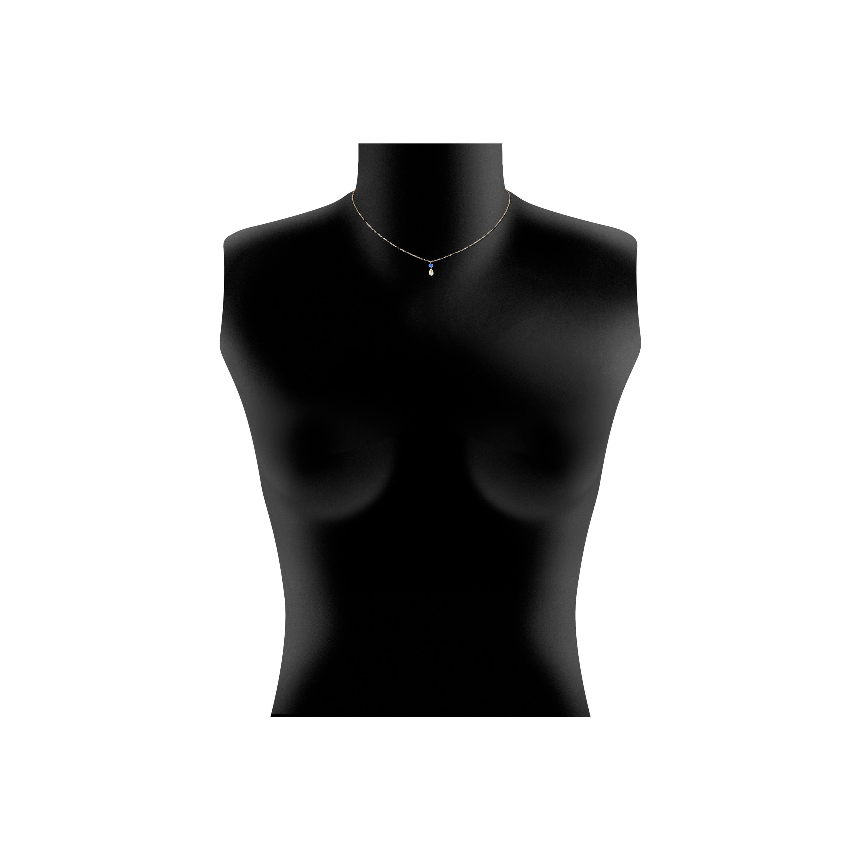 Collier aus 750/- Gelbgold mit einem blauen Saphir (0,26 ct.) und einem Diamant im Tropfen-Schliff (0,35 ct.)Länge 42 cm