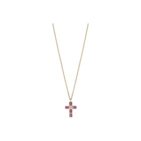 Collier aus 750/- Rotgold mit pinken Saphiren im Emerald-Schliff (1,17 ct.) und Brillanten (0,15 ct.)Länge 45 cm