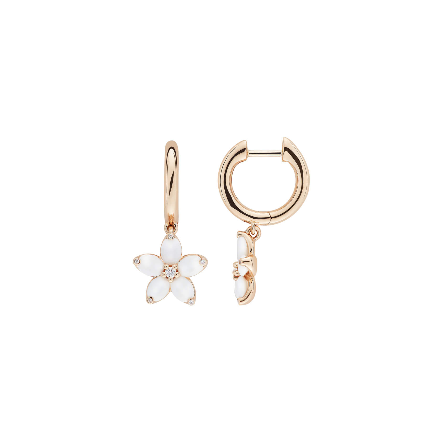 Ohrringe aus 750/- Rotgold mit weißen Achaten (1,38 ct.) und Brillanten (0,06 ct.)Länge 2,45 cm