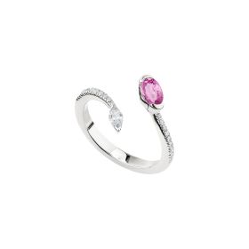 Ring aus 750/- Weißgold mit einem pinken Saphir (0,54 ct.), Brillanten (0,15 ct.) und Diamanten (0,11 ct.)Produktspezifikationen