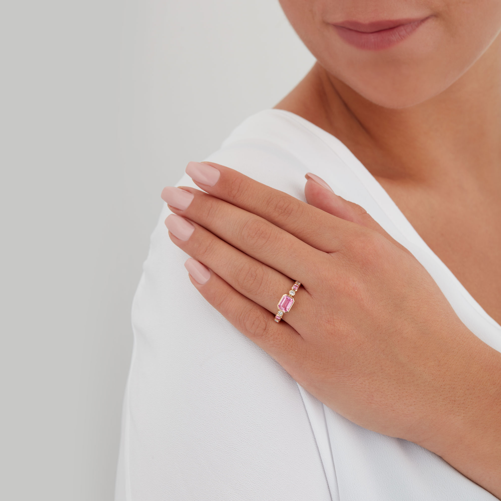 Ring aus 750/- Rotgold mit pinken Saphiren im Emerald-Schliff (1,14 ct.) und Brillanten (0,15 ct.)Produktspezifikationen
