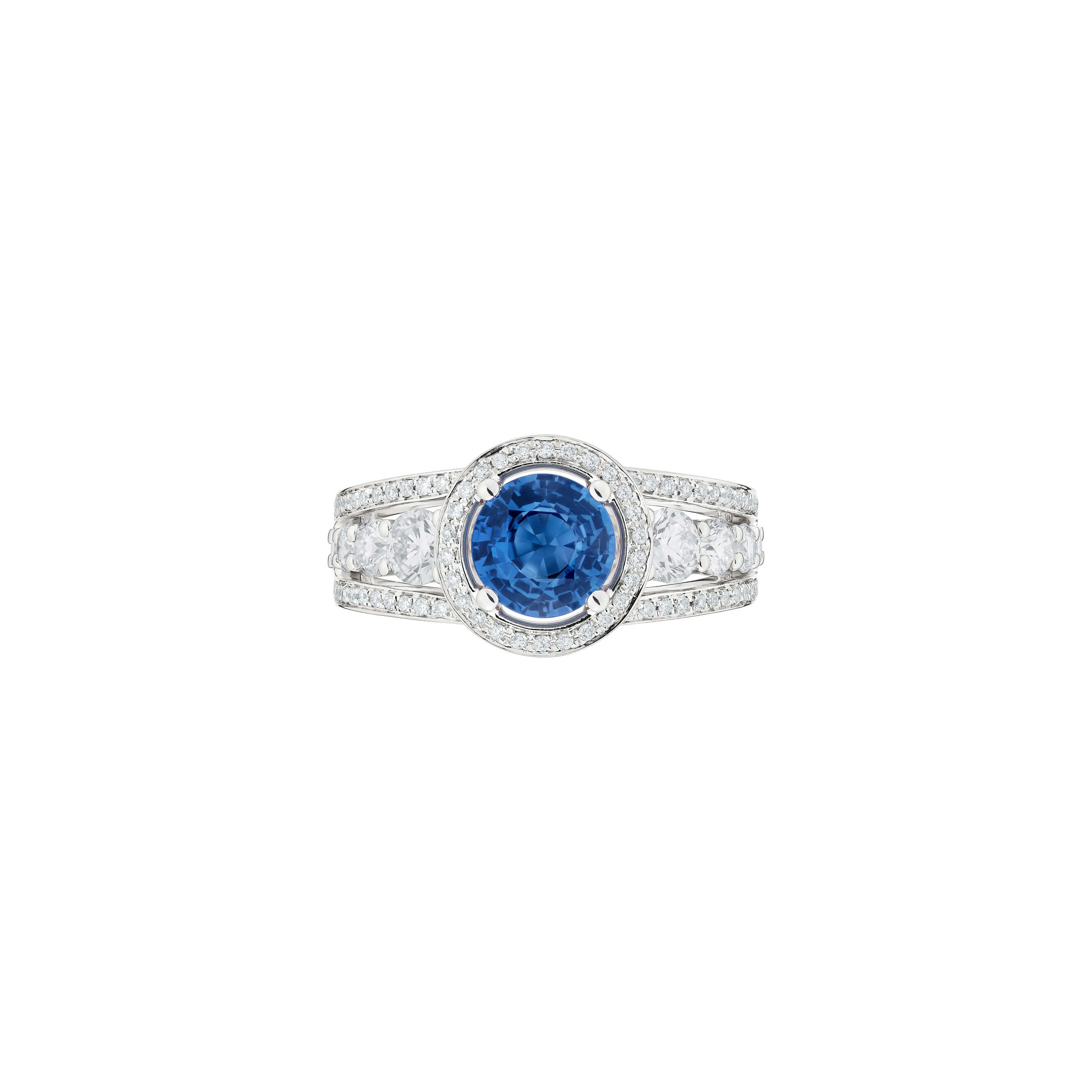 Ring aus 750/- Weißgold mit einem blauen Saphir (1,56 ct.) und Brillanten (0,99 ct.)Produktspezifikationen