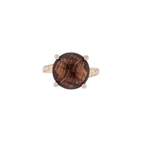 Ring aus 750/- Rotgold mit einem Rauchquarz im Briolette-Schliff (9,35ct) und 22 Brillianten (0,47 ct.)Produktspezifikationen