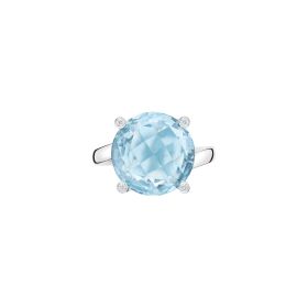 Ring aus 750/- Weißgold mit einem blauen Topas im Briolett-Schliff (12,55 ct.) und Brillanten (0,05 ct.)Produktspezifikationen
