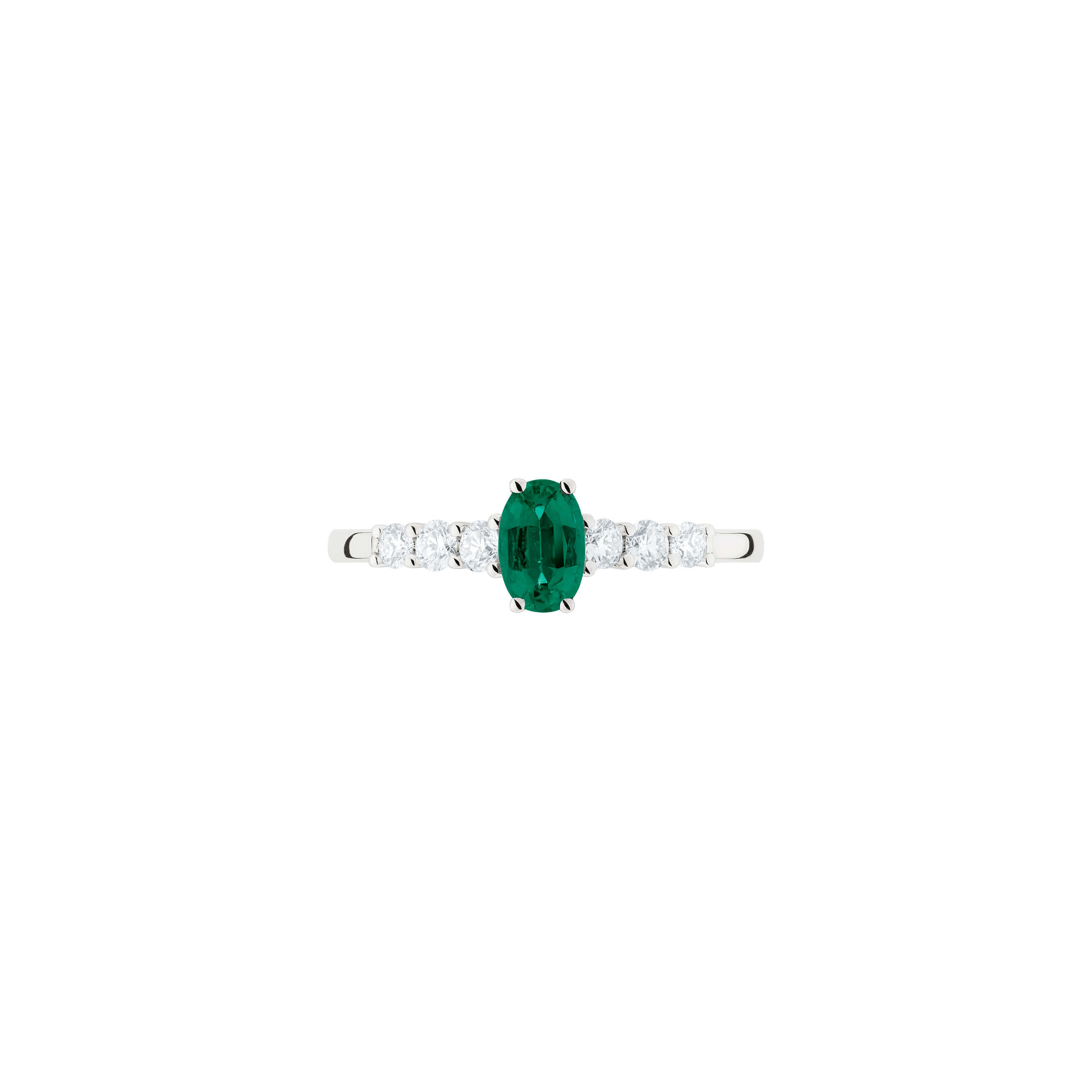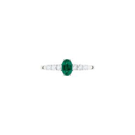 Ring aus 750/- Weißgold mit einem Smaragd (0,35 ct.) und Brillanten (0,28 ct.)Produktspezifikationen