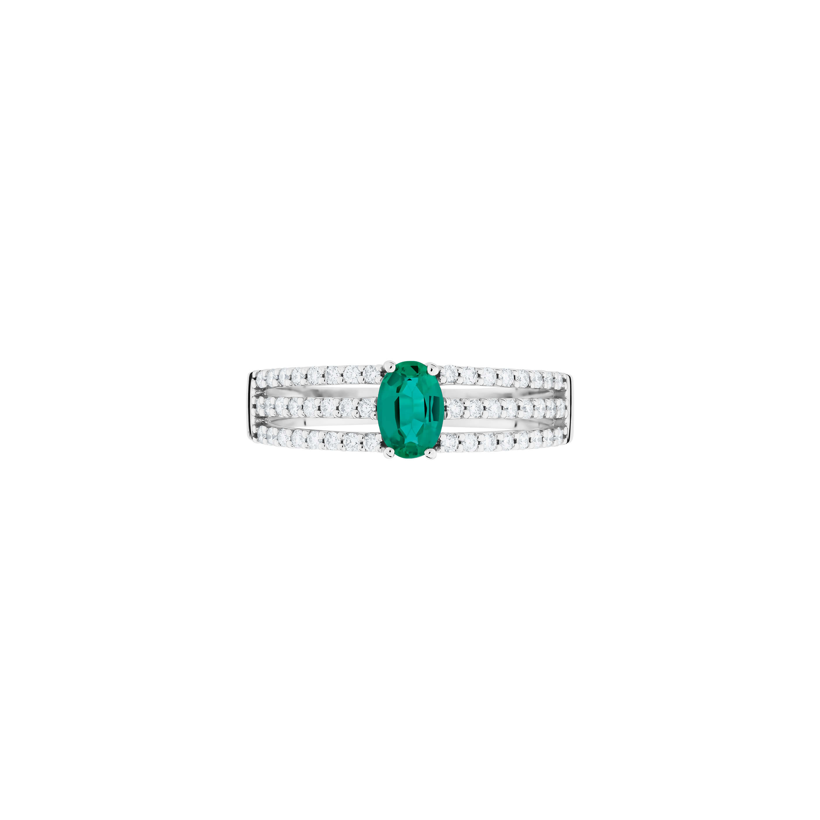 Ring aus 750/- Weißgold mit einem ovalen Smaragd (0,33 ct.) und Brillanten (0,30 ct.)Produktspezifikationen