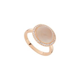 Ring aus 750/- Rotgold mit einem weißen Mondstein im Cabochon-Schliff (3,57 ct.) und Brillanten (0,16 ct.)Produktspezifikationen