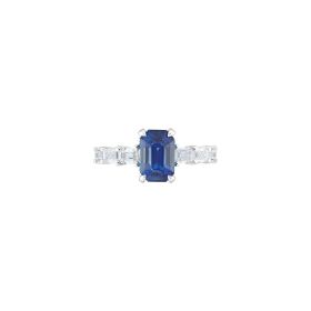 Ring aus 750/- Weißgold mit einem blauen Saphir im Octagonal-Schliff (3,38 ct.) und Diamanten im Emerald-Schliff (1,08 ct.)Produktspezifikationen