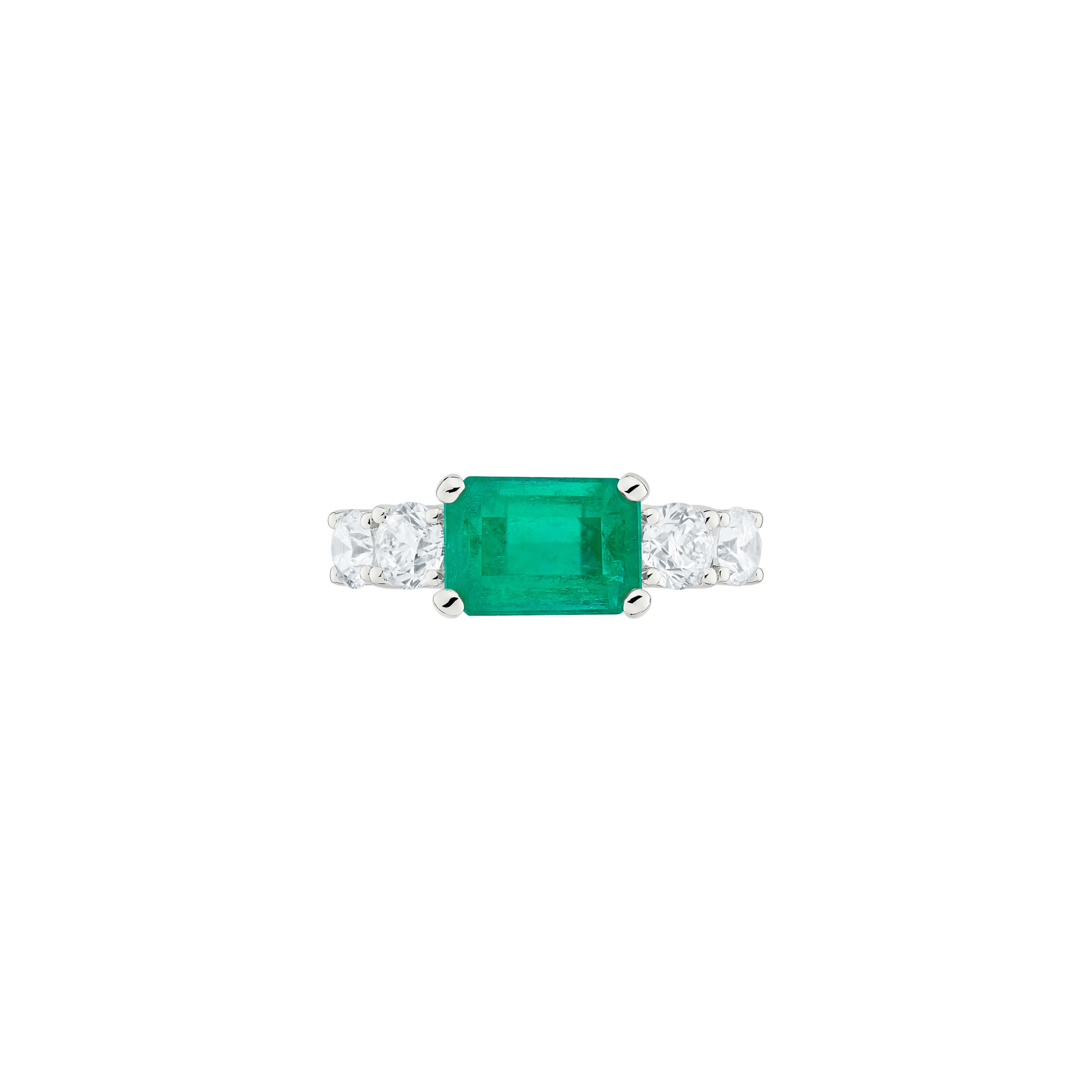 Ring aus 750/- Weißgold mit einem Smaragd im Emerald-Schliff (3,08 ct.) und Brillanten (1,31 ct.)Produktspezifikationen