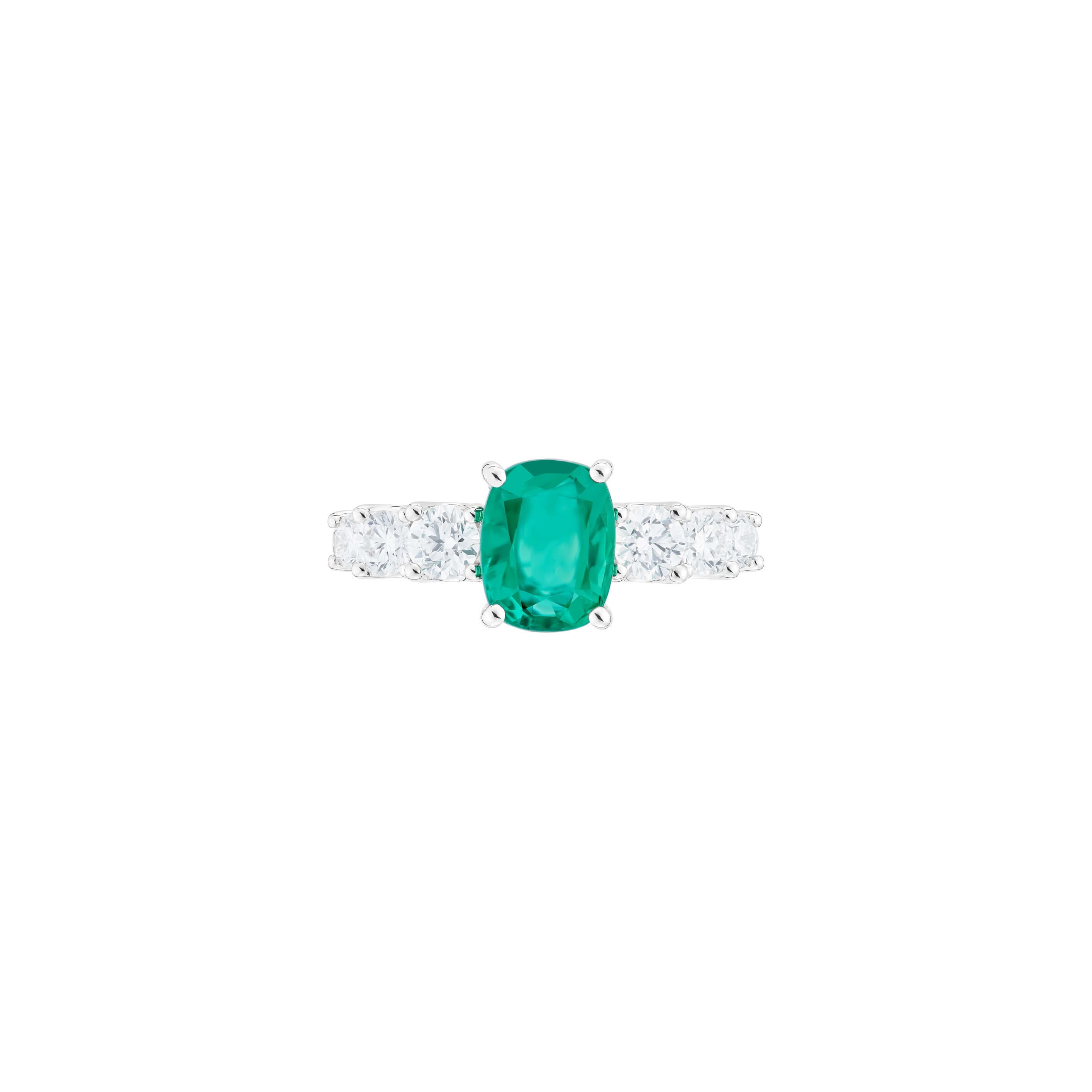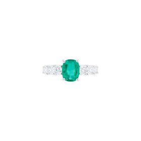 Ring aus 750/- Weißgold mit einem Smaragd im Cushion-Schliff (1,80 ct.) und Brillanten (0,90 ct.)Produktspezifikationen