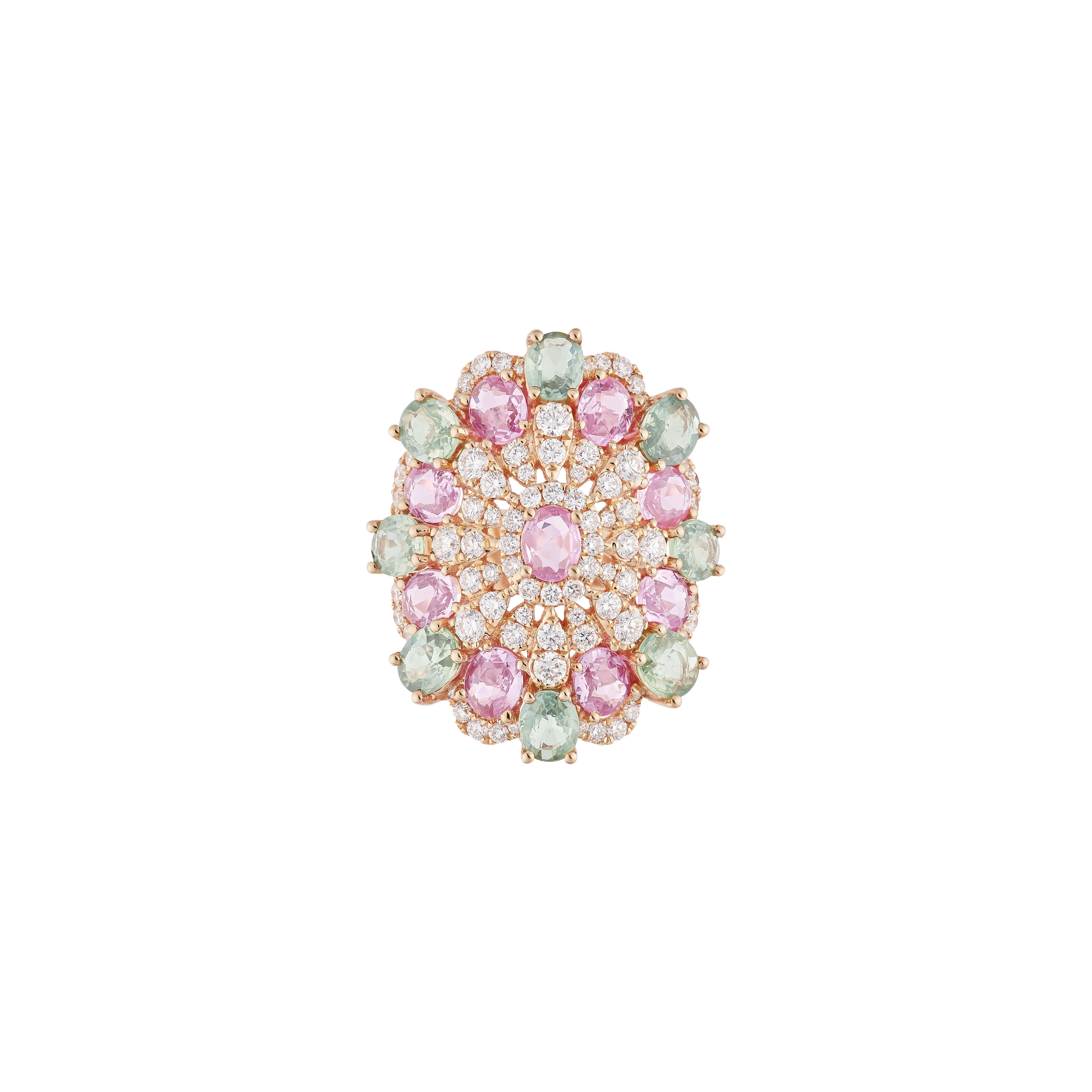 Ring aus 750/- Rotgold mit multicolor saphiren (6,07 ct.) und Brillanten (1,18 ct.)Produktspezifikationen