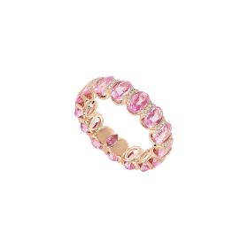 Ring aus 750/- Rotgold mit pinken ovalen Saphiren (6,66 ct.), einem pinken Saphir im Navette-Schliff (0,09 ct.) und Brillanten (0,16 ct.)Produktspezifikationen