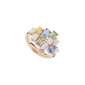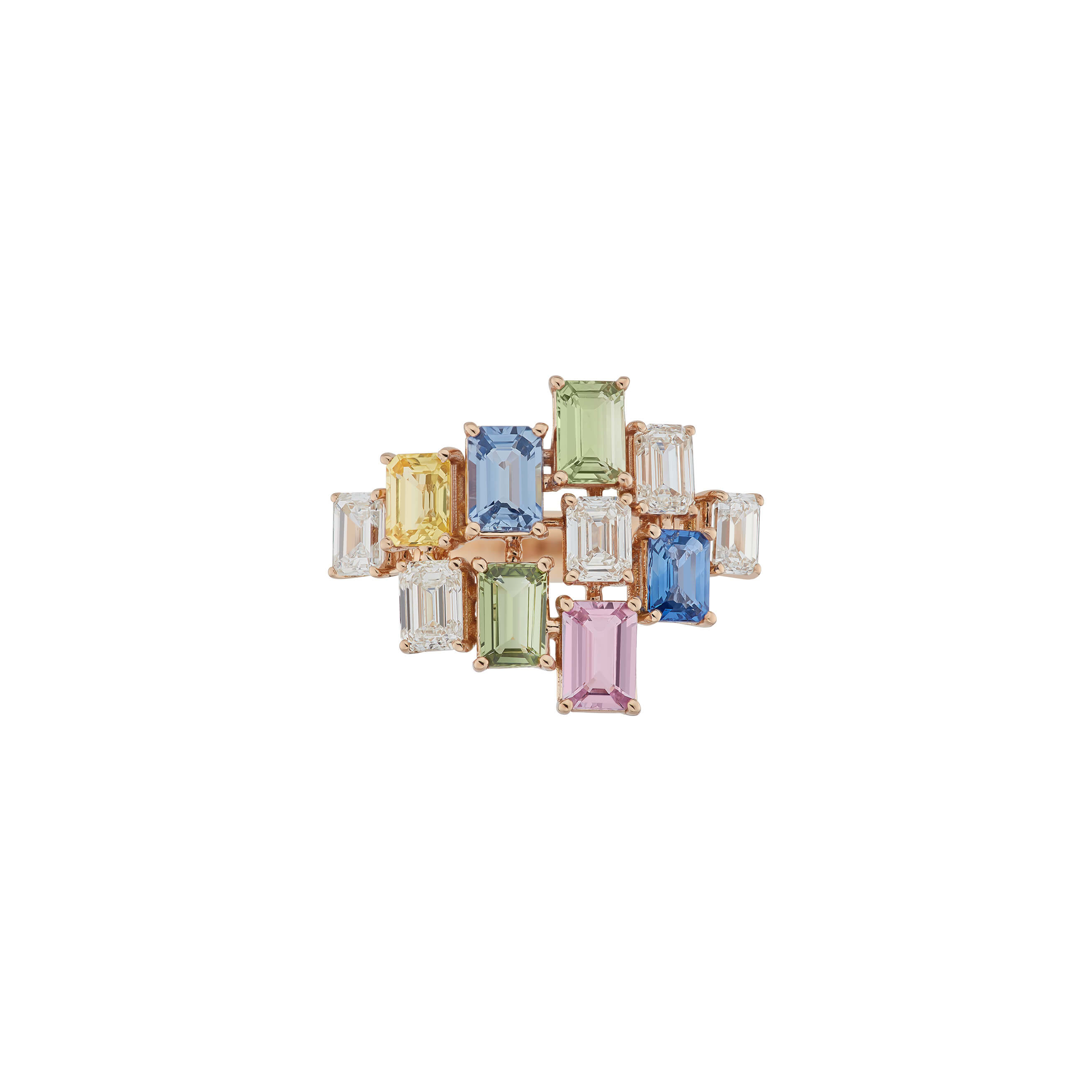 Ring aus 750/- Rotgold mit Diamanten im Emerald-Schliff (1,29 ct.) und multicolor Saphiren im Emerald Schliff (2,24 ct.)Produktspezifikationen