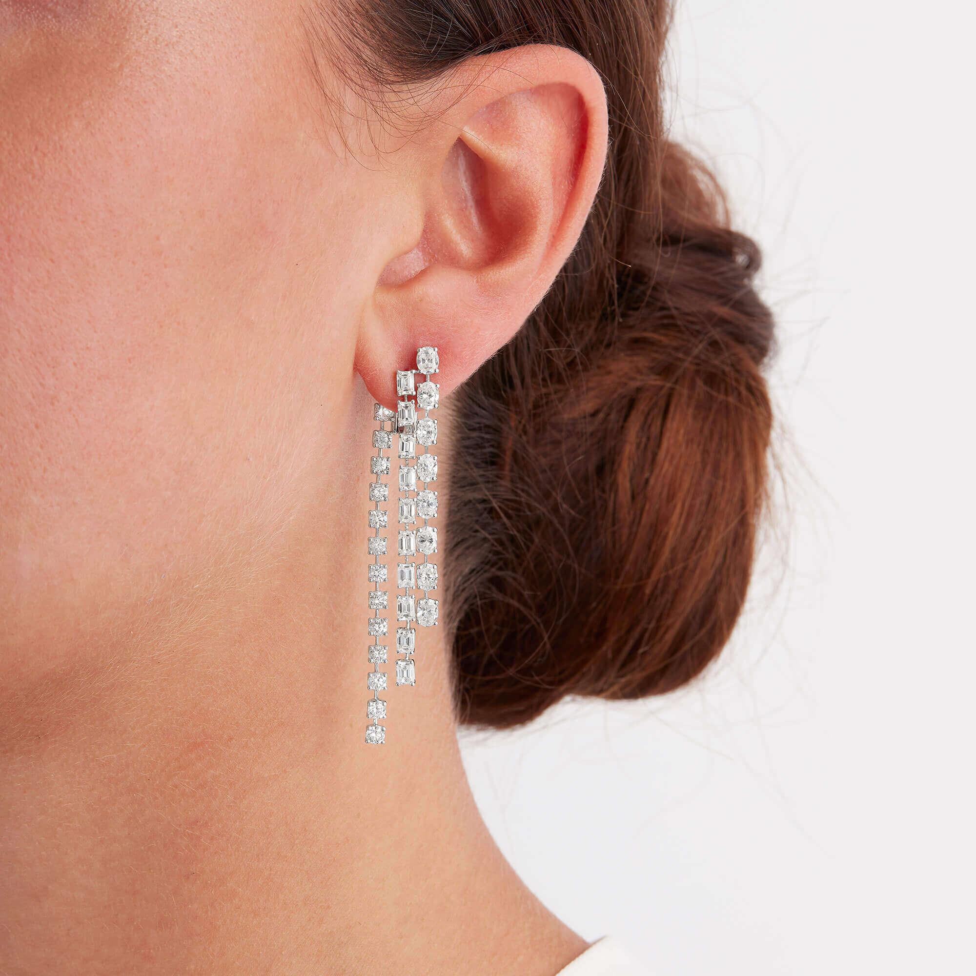 Ohrringe aus 750/- Weißgold mit Diamanten im Emerald-Schliff (2,95 ct.), ovalen Diamanten (3,05 ct.) und Brillanten (2,28 ct.)Produktspezifikationen