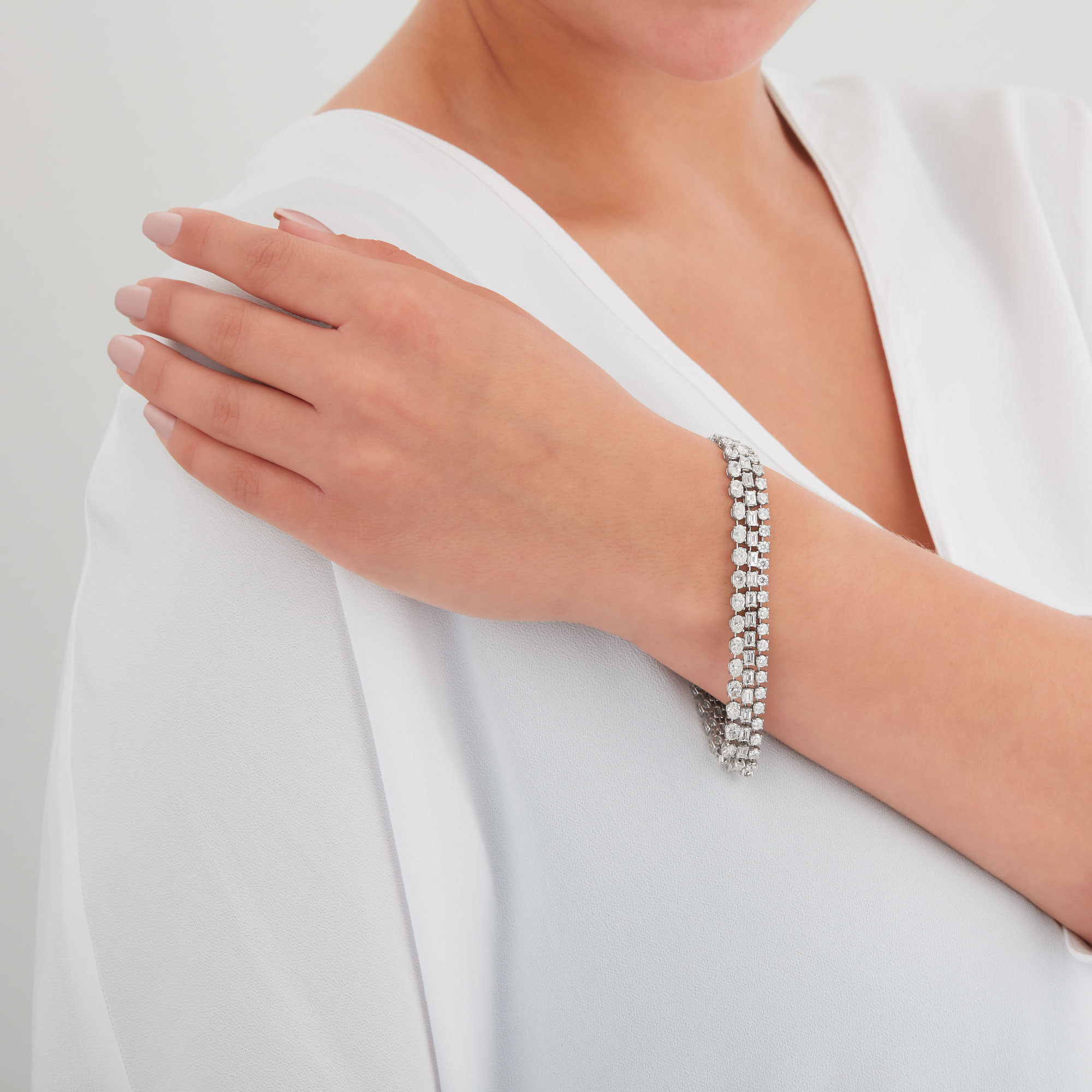 Armband aus 750/- Weißgold mit Brillanten (4,22 ct.), Diamanten im Emerald-Schliff (5,65 ct.) und ovalen Diamanten (6,58 ct.)Produktspezifikationen