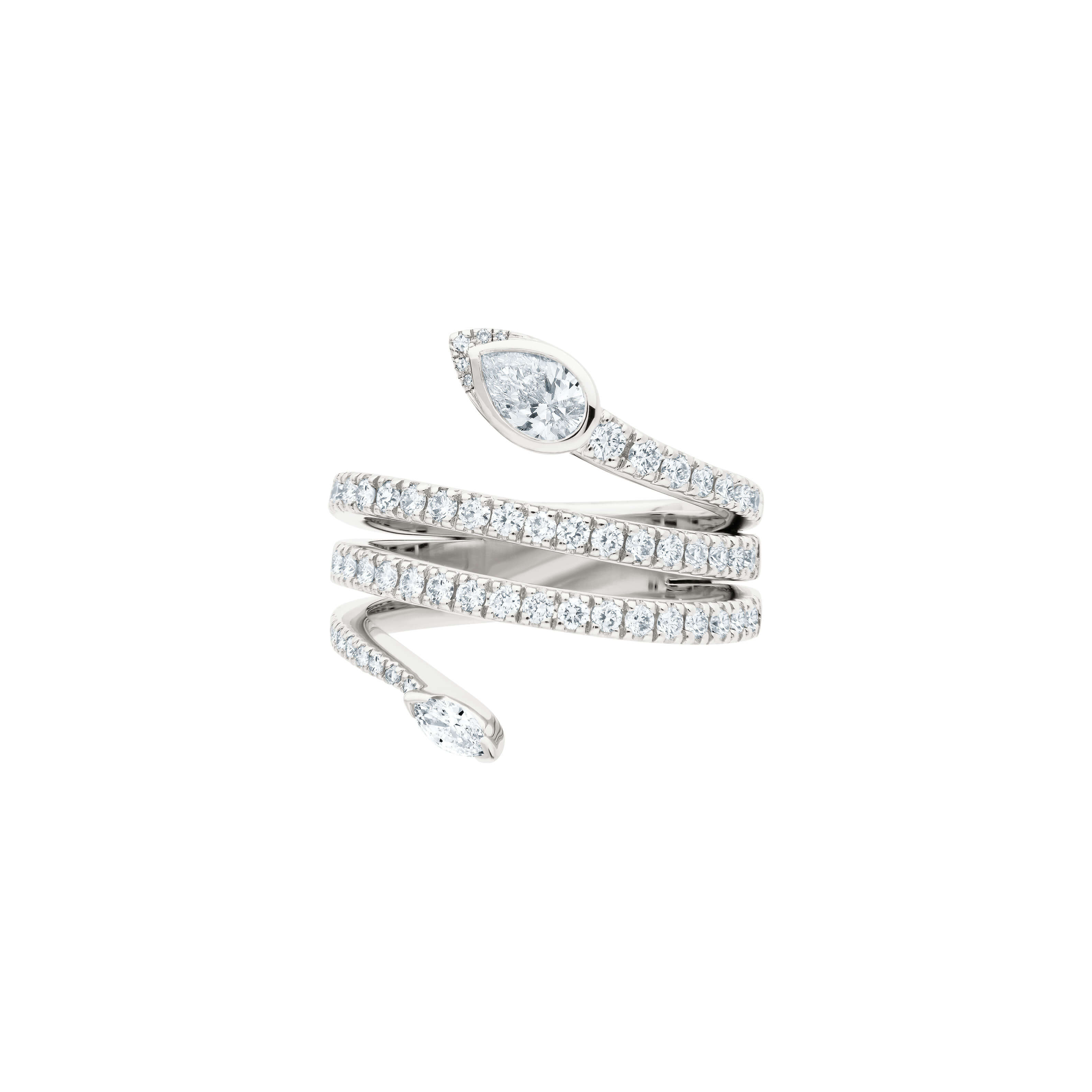 Ring aus 750/- Weißgold mit Diamanten im Tropfen-Schliff (0,39 ct.), Diamanten im Navette-Schliff (0,12 ct.) und Brillanten (0,88 ct.)Produktspezifikationen