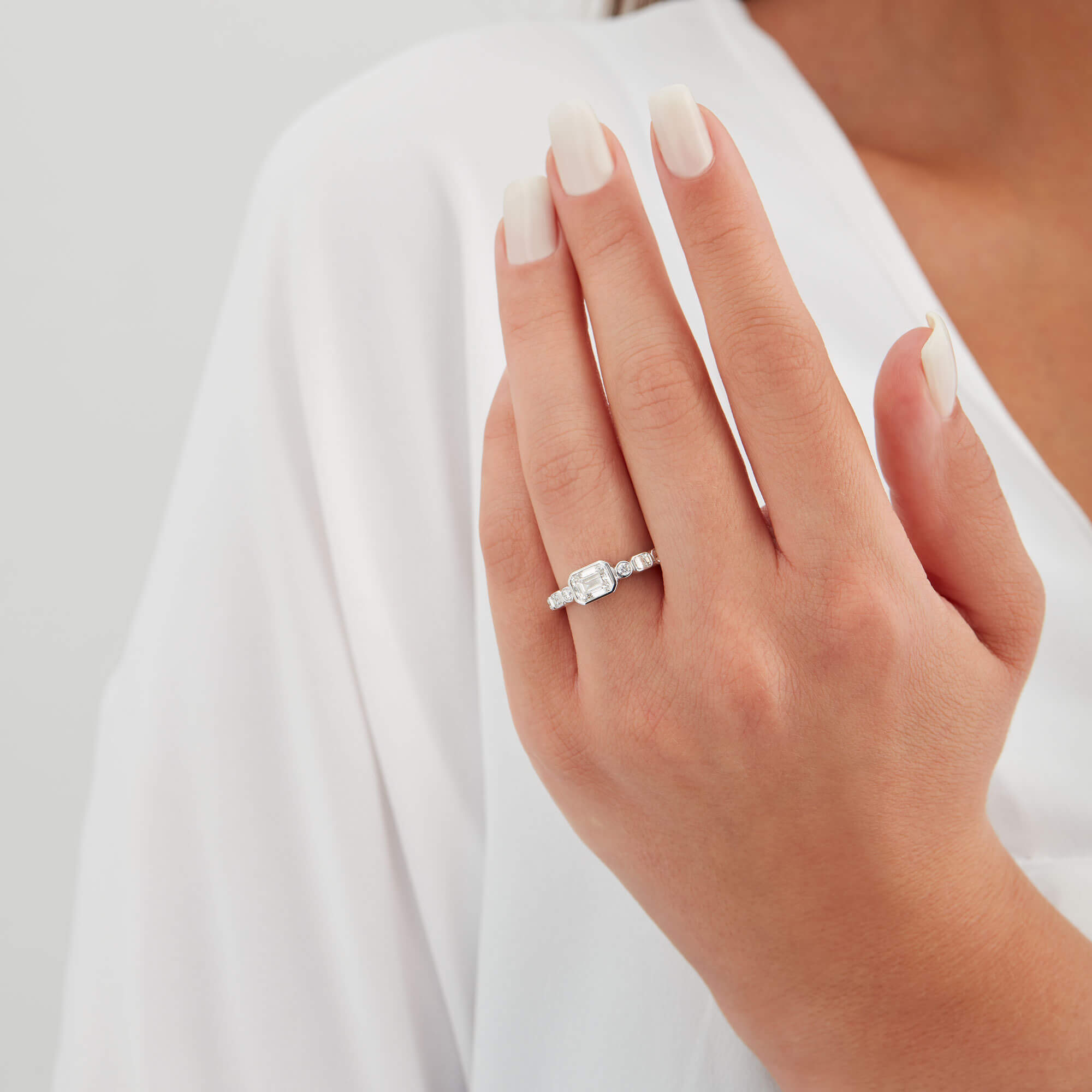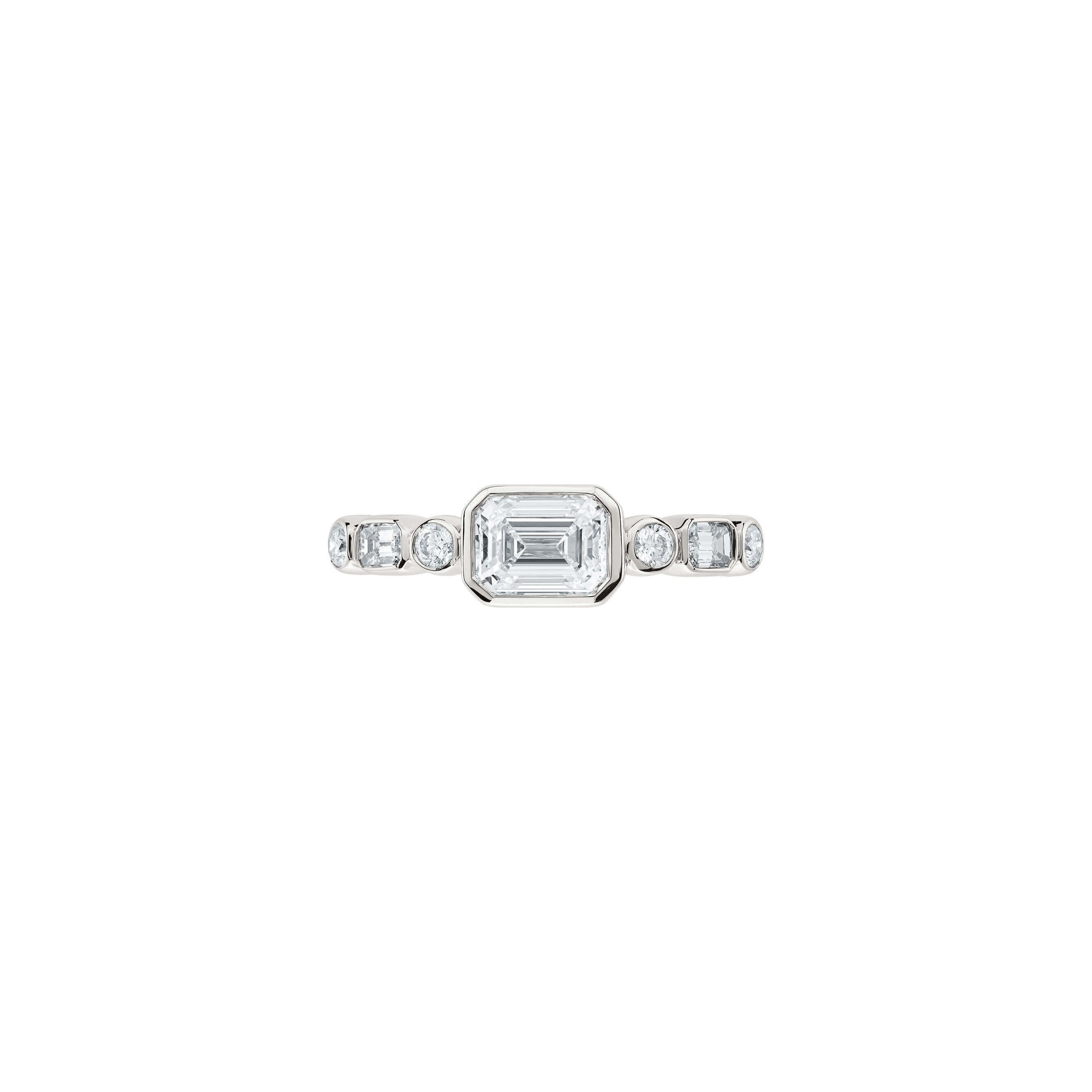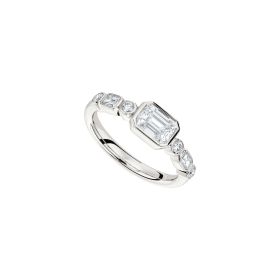 Ring aus 750/- Weißgold mit Diamanten im Emerald-Schliff (1,20 ct.) und Brillanten (0,15 ct.)Produktspezifikationen