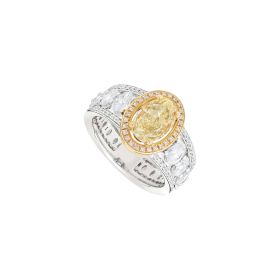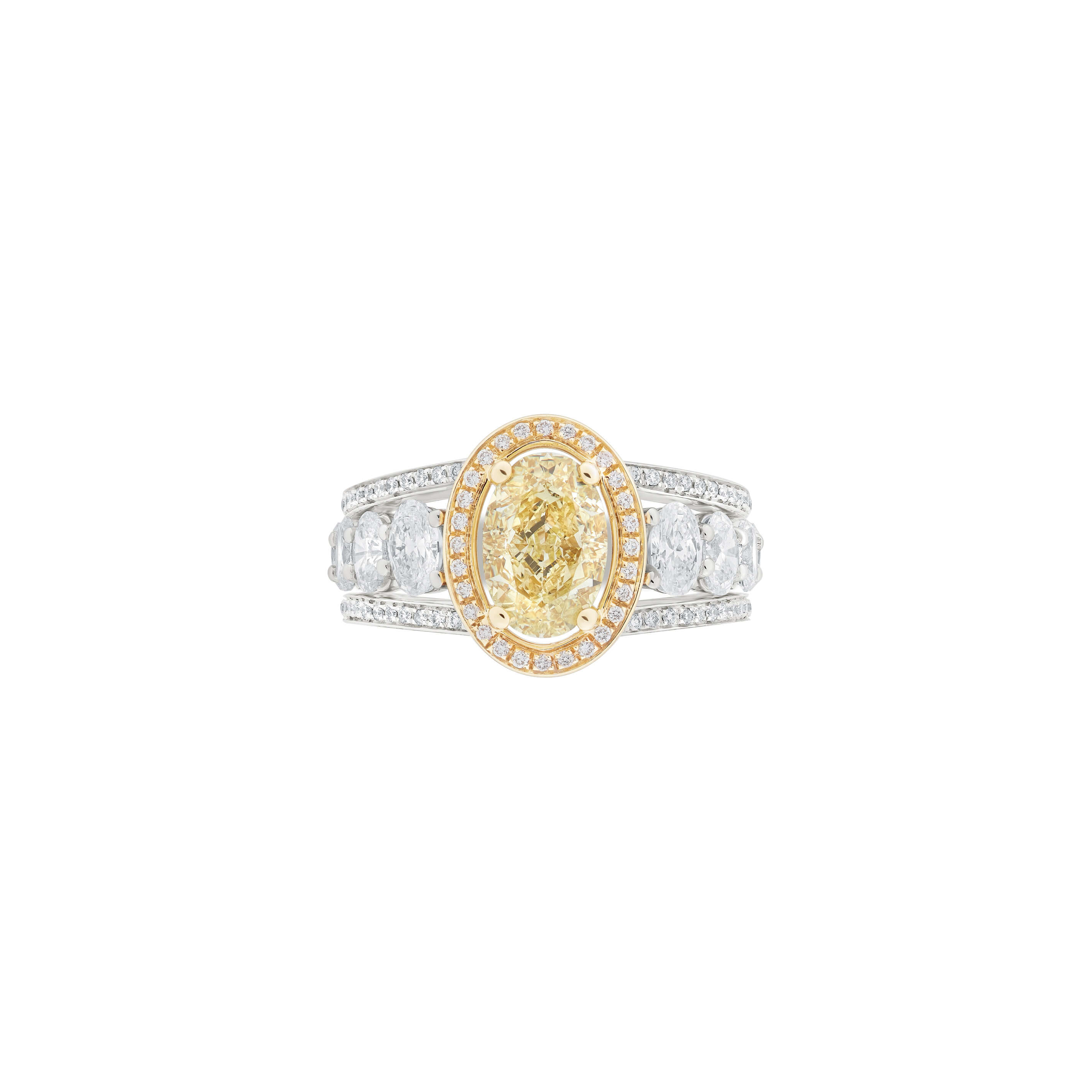 Ring aus 750/- Weiß- und Gelbgold mit einem gelbem ovalen Diamanten (2,07 ct.), ovale Diamanten (1,80 ct.) und Brillanten (0,37 ct.)Produktspezifikationen