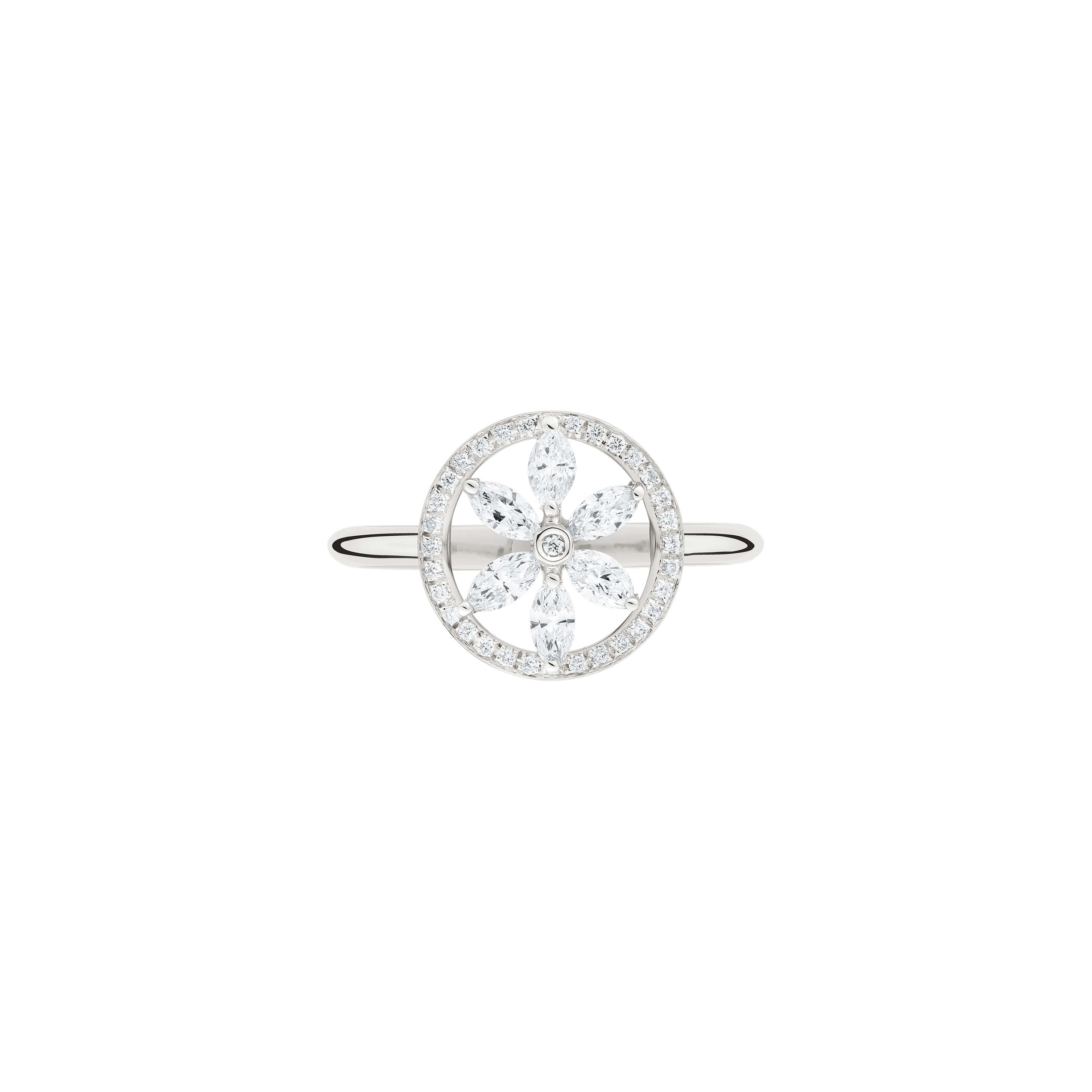 Ring aus 750/- Weißgold mit Diamanten im Navette-Schliff (0,46 ct.) und Brillanten (0,10 ct.)Produktspezifikationen