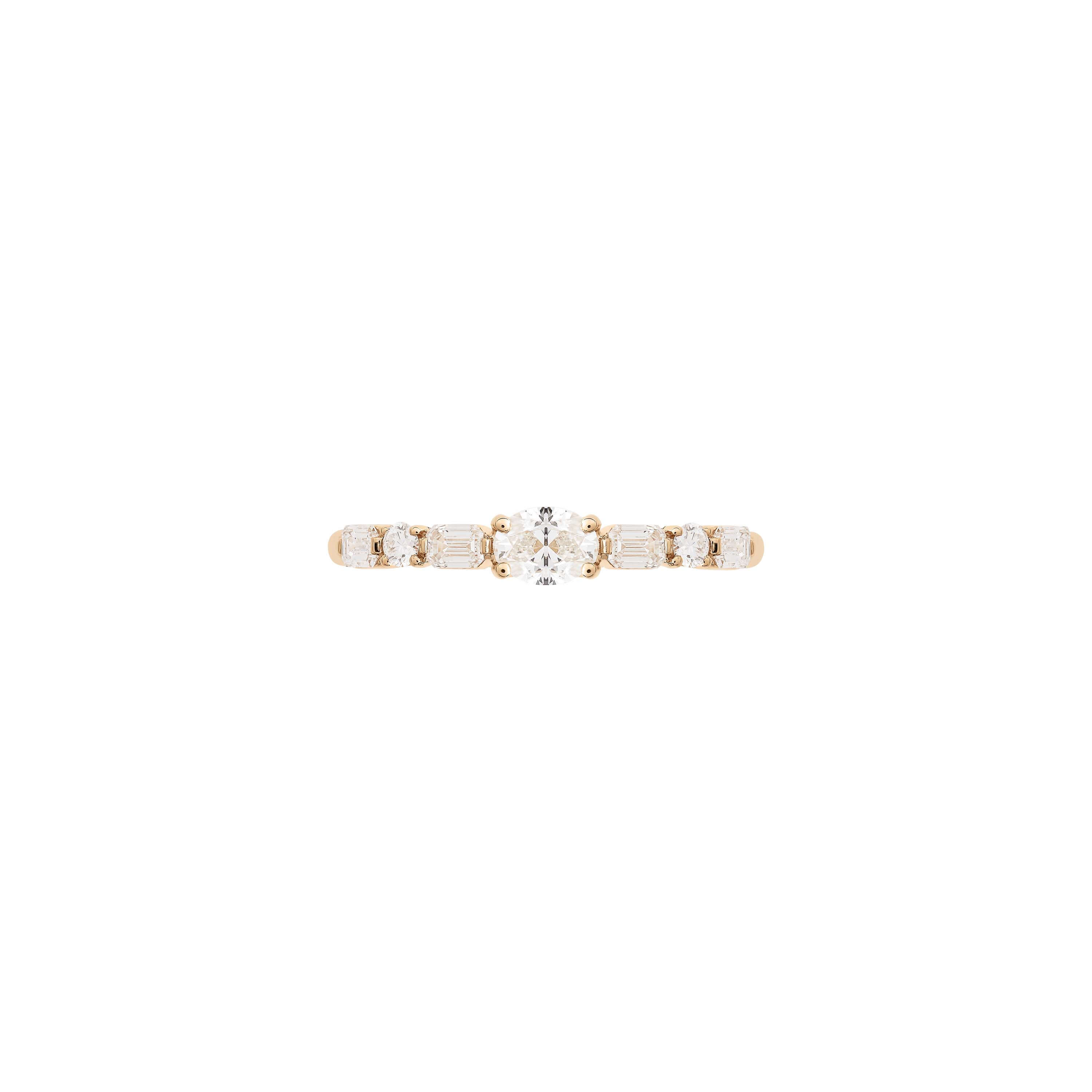 Ring aus 750/- Rotgold mit einem ovalen Diamant (0,41 ct.), Diamanten im Emerald-Cut (0,48 ct.) und Brillanten (0,12 ct.)Produktspezifikationen