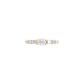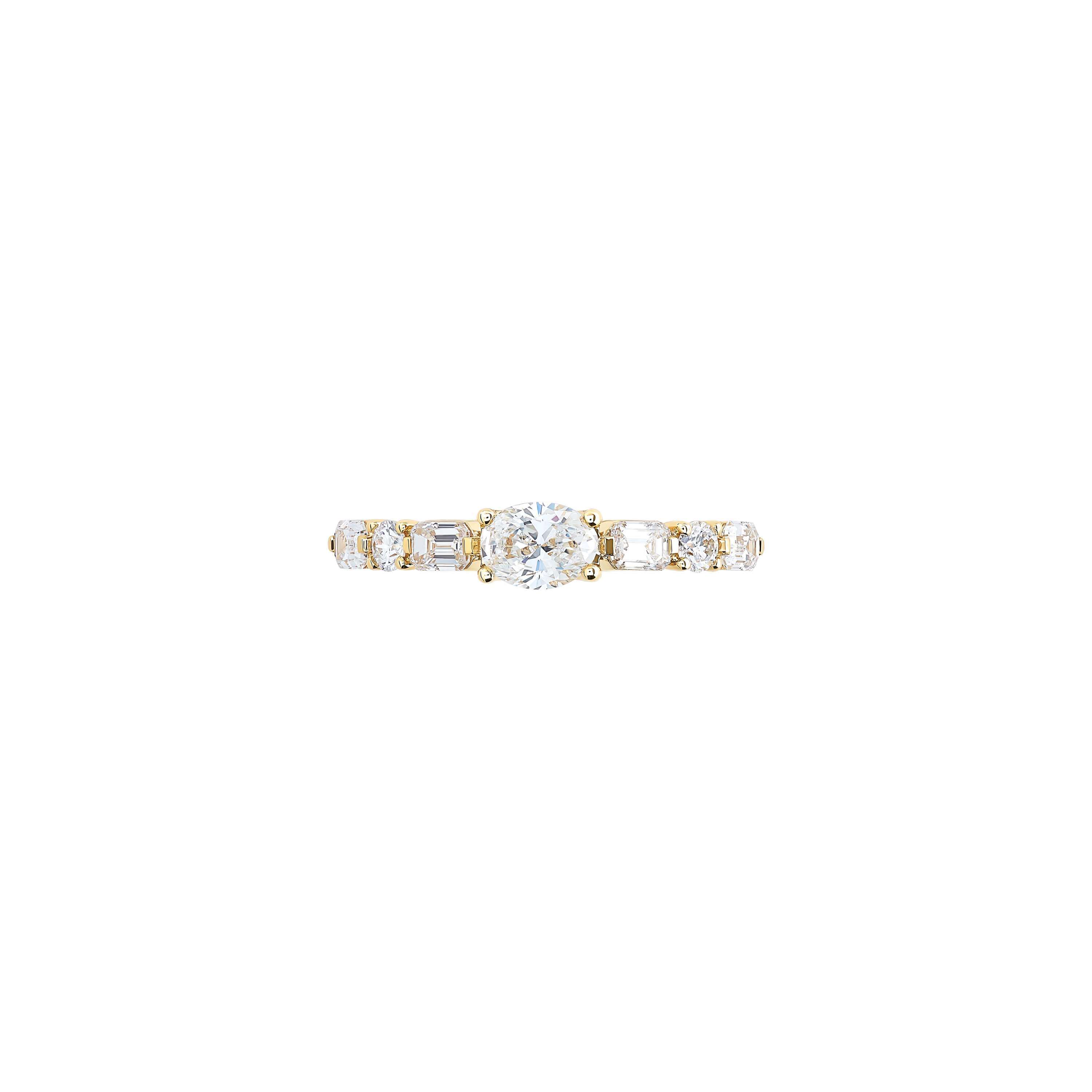 Ring aus 750/- Gelbgold mit einem ovalen Diamant (0,41 ct.), Diamanten im Emerald-Cut (0,41 ct.) und Brillanten (0,12 ct.)Produktspezifikationen