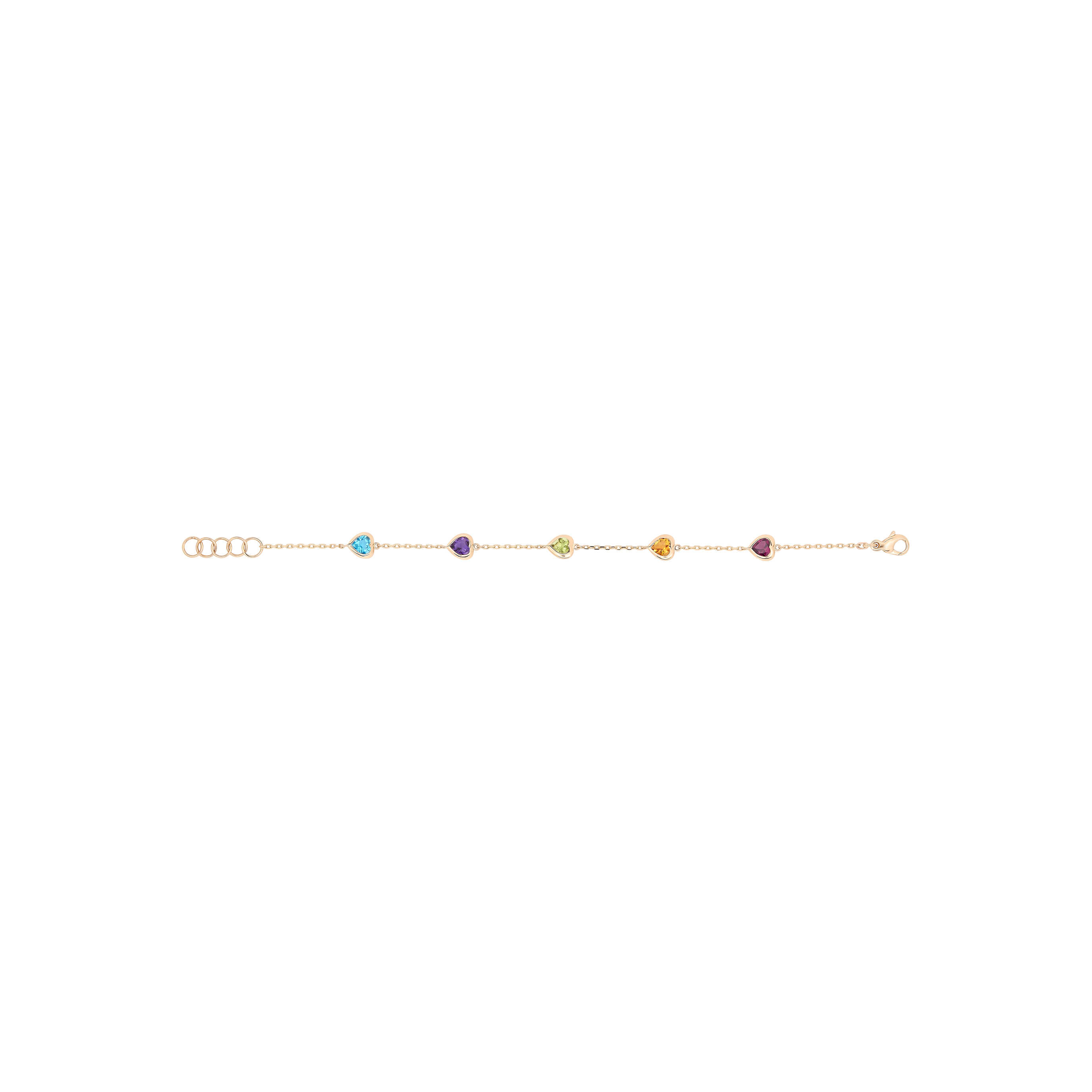 Armband aus 750/- Rotgold mit Amethyst, Peridot, Citrin, Topas und Rhodolith im Herz-Schliff (insg. 2,53 ct.)Länge 19 cm