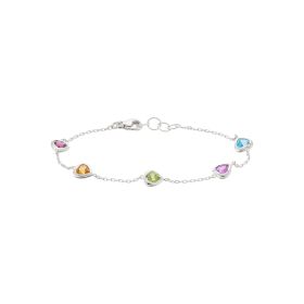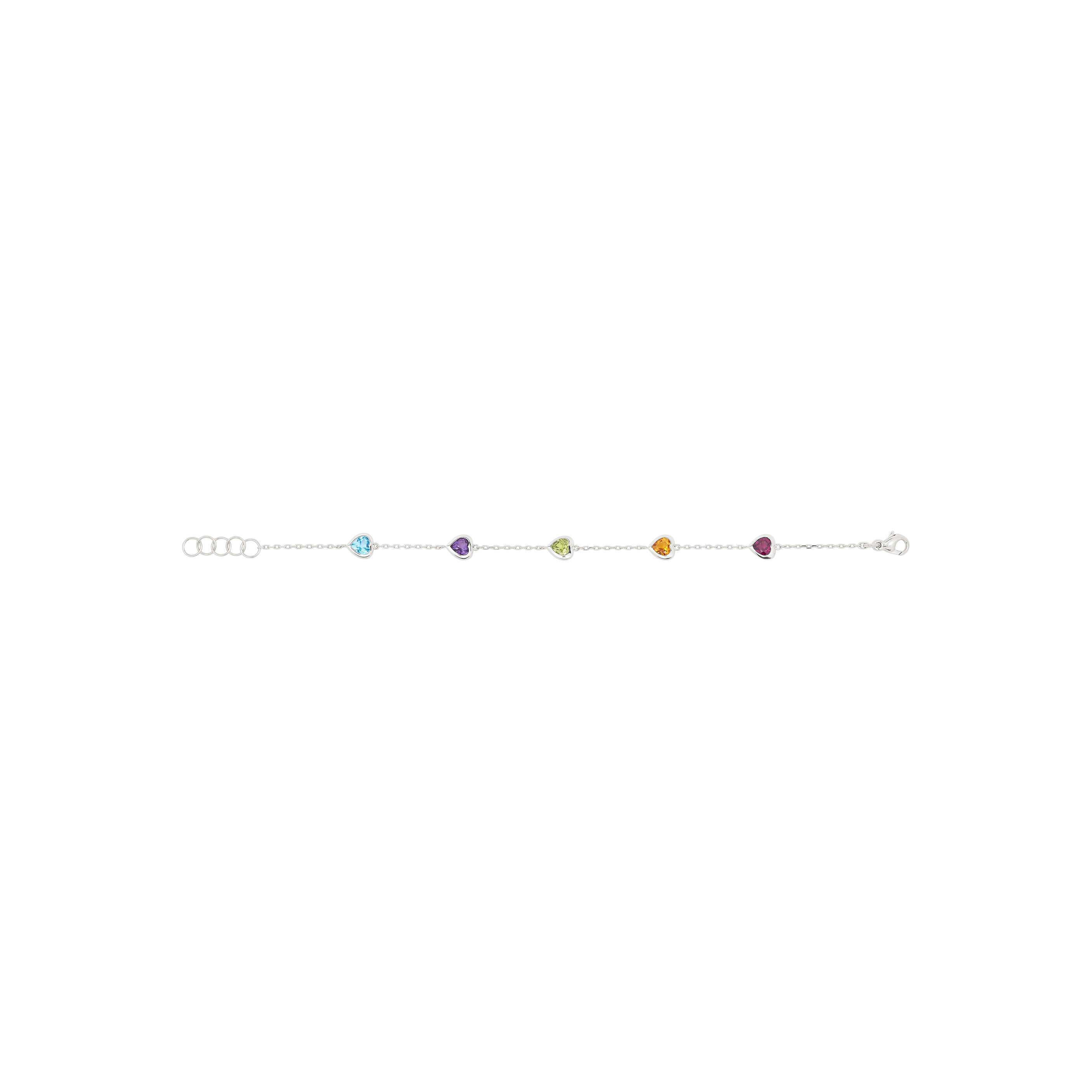 Armband aus 750/- Weißgold mit Amethyst, Peridot, Citrin, Topas und Rhodolith im Herz-Schliff (insg. 2,53 ct.)Länge 19 cm