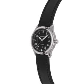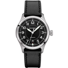 Modell "R1AUTOMATIC" - mit Kalbslederarmband und schwarzem Zifferblatt. Funktion: Stunde, Minute, Sekunde, Datum. Ø 42 mm, Edelstahl 316L, Automatik, 42 Stunden Gangreserve, satinierte Appliken. Glas- und Gehäuseboden aus beidseitig entspiegeltem Saphirglas. Verschraubte Krone, wasserdicht bis 100 m (10 bar), handgenähtes Lederband mit Sicherheitsfaltschließe.