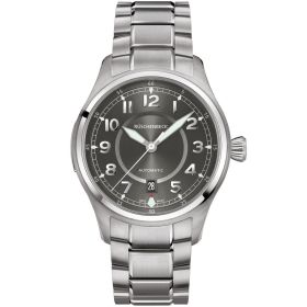 Modell "R1AUTOMATIC" - mit Edelstahlarmband und grauem Zifferblatt. Funktion: Stunde, Minute, Sekunde, Datum. Ø 42 mm, Edelstahl 316L, Automatik, 42 Stunden Gangreserve, satinierte Appliken. Glas- und Gehäuseboden aus beidseitig entspiegeltem Saphirglas. Verschraubte Krone, wasserdicht bis 100 m (10 bar), massiv gefertigtes Metallband aus Edelstahl mit Sicherheitsfaltschließe.