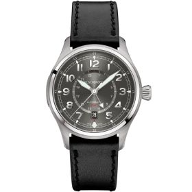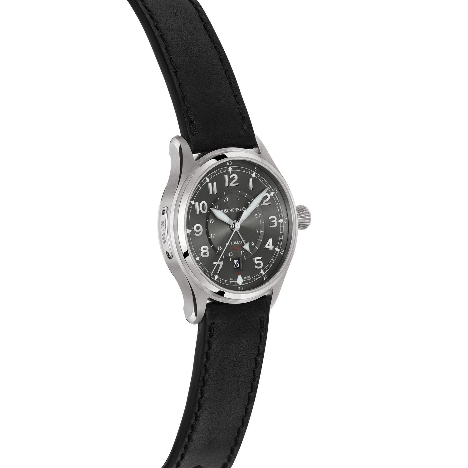 Modell "R2CITY" - mit Lederarmband und grauem Zifferblatt. Mit der R2CITY von Stadt zu Stadt und das, in verschiedenen Zeitzonen. Ein Leichtnis, durch das 24-Stunden-HilfsZifferblatt. Als Modellvariante mit handgefertigtem Kalbslederband, ist sie ein praktischer Begleiter für den Liebhaber von Luxusuhren. Das Uhrenarmband ist mit Sicherheitsfaltschließe ausgestattet und so komfortabel und funktional zu tragen. Das Zifferblatt erscheint durch fein satinierte Applikationen sehr dezent und hochwertig. R2CITY - Funktion: Stunde, Minute, Sekunde, Datum, 24-Stunden-Anzeige (GMT). Ø 42 mm, Edelstahl 316L, Automatik, 42 Stunden Gangreserve. Glas- und Gehäuseboden aus beidseitig entspiegeltem Saphirglas. Verschraubte Krone, wasserdicht bis 100 m (10 bar).