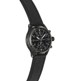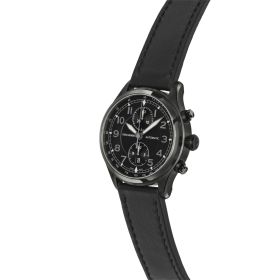Modell R3COUNTER BLACK Edtion ist der Chronograph unter den THE WATCH Fliegeruhren. In dieser limited Edition sind das Gehäuse und die Sicherheitsfaltschließe am Lederband mit Diamond Like Carbon (DLC) beschichtet und dadurch tief schwarz eingefärbt. Fein satinierte Applikationen auf dem Zifferblatt fügen sich dezent in das Gesamtbild des Zeitmessers ein. R3COUNTER Black Edition: Nicht nur für Individualisten, sondern insbesondere auch für Uhren-Liebhaber wurde eine streng limitierte Variante der R3COUNTER BLACK EDITION auf 100 Exemplare gefertigt. Die schwarze DLC-Beschichtung härtet die Oberfläche extrem (bis zu 30 mal härter als Edelstahl). R3COUNTER BLACK EDITION - Funktion: Stunde, Minute, Sekunde, Chronograph, Datum. Ø 44 mm, Edelstahl 316L mit DLC-Beschichtung, Automatik, 48 Stunden Gangreserve, satinierte Appliken. Glas- und Gehäuseboden aus beidseitig entspiegeltem Saphirglas. Verschraubte Krone, wasserdicht bis 100 m (10 bar).