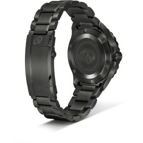 Diese Limited Edition der R4DIVER BLACK EDITION besticht den Uhrenliebhaber durch die tiefschwarze Optik. Das Gehäuse und das Uhrenarmband der Luxusuhr sind tiefschwarz, mit einer Diamond Like Carbon (DLC) Beschichtung, eingefärbt und auch die Zifferblatt Appliken und Zeiger sind mit Black-Superluminova veredelt. So stechen die Zeiger und Applikationen nur in der Dunkelheit mystisch heraus und zeigen sich tagsüber in dezenter Form. Die R4DIVER BLACK EDITION trotzt noch besser den Strapazen des Alltags. Diese limitierten Exemplare werden durch eine DLC-Beschichtung nahezu unverwüstlich. Nur wenige Unternehmen können diese Art von Beschichtung vornehmen. DLC (DIAMOND LIKE CARBON) ist 100% allergiefrei. Allein die DLC-Beschichtung dauert 10-14 Tage und macht die Oberfläche bis zu 30 mal härter als Edelstahl. Limitiert auf jeweils 100 Exemplare! R4DIVER BLACK EDITION - Funktion: Stunde, Minute, Sekunde, Datum. Ø 42 mm, Edelstahl 316L mit DLC-Beschichtung, Automatik, 42 Stunden Gangreserve, Old Radium Superluminova Appliken. Einseitig drehbare Lünette mit Keramik-Inlay, automatisches Helium-Ventil. Beidseitig entspiegeltes Saphirglas, verschraubter Gehäuseboden. Verschraubte Krone, wasserdicht bis 500 m (50 bar), Edelstahlband mit Sicherheitsfaltschließe und R-Link Verlängerungselement, DLC-beschichtet.