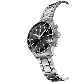 Die silberne R5CHRONO rundet die RÜSCHENBECK - THE WATCH - Taucheruhrenkollektion ab. Als Chronograph ist sie ein wahrer Zeitmesser unter den RÜSCHENBECK Luxusuhren. Als Taucheruhr verfügt sie über eine extreme Wasserdichte von 50 bar. Das Metallband aus Edelstahl setzt sich aus verschieden großen und einzeln verschraubten Bandelementen zusammen. Die Zeiger und Zifferblatt Applikationen der Luxustaucheruhr leuchten durch die Superluminova Veredelung im Dunkeln auf. R5CHRONO, Funktion: Stunde, Minute, Sekunde , Datum, Chronograph. Ø 44 mm, Edelstahl 316L, Automatik, 48 Stunden Gangreserve, White Superluminova Appliken. Einseitig drehbare Lünette mit Keramik-Inlay, automatisches Helium-Ventil. Beidseitig entspiegeltes Saphirglas, verschraubter Gehäuseboden. Verschraubte Krone und Drücker, wasserdicht bis 500 m (50 bar), Edelstahlband mit Sicherheitsfaltschließe und R-Link Verlängerungselement.