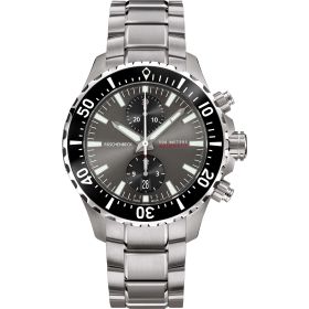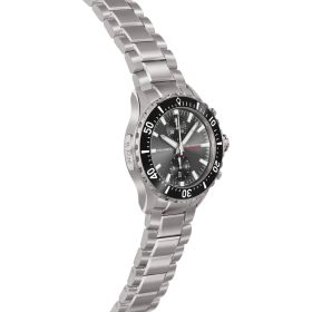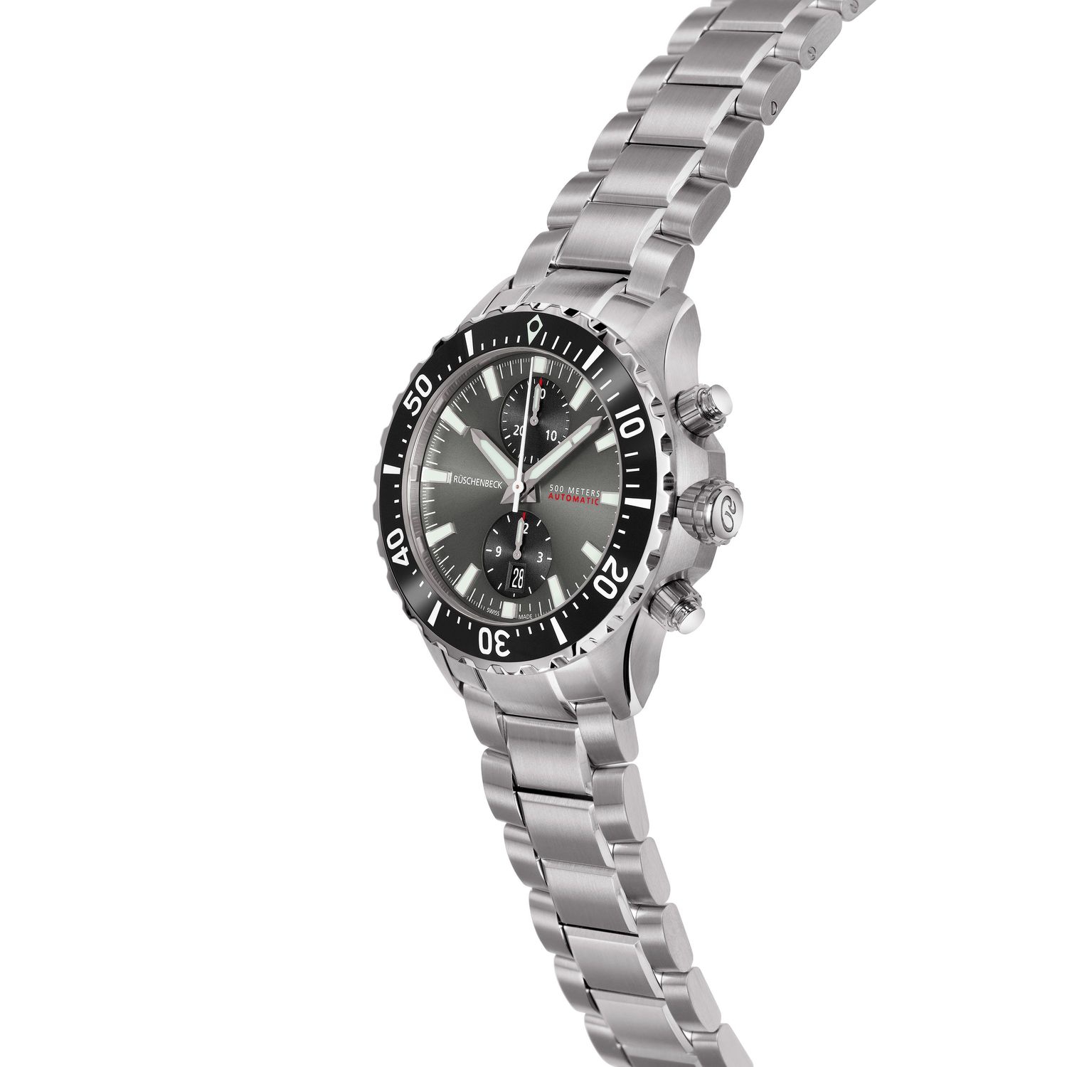Die R5CHRONO überzeugt mit grauem Zifferblatt. R5CHRONO, Funktion: Stunde, Minute, Sekunde , Datum, Chronograph. Ø 44 mm, Edelstahl 316L, Automatik, 48 Stunden Gangreserve, White Superluminova Appliken. Einseitig drehbare Lünette mit Keramik-Inlay, automatisches Helium-Ventil. Beidseitig entspiegeltes Saphirglas, verschraubter Gehäuseboden. Verschraubte Krone und Drücker, wasserdicht bis 500 m (50 bar), Edelstahlband mit Sicherheitsfaltschließe und R-Link Verlängerungselement.