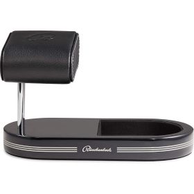 Eine intelligente und luxuriöse Möglichkeit, Ihre Uhr aufzubewahren, wenn Sie sie nicht tragen. Eine hochglänzende schwarze Basis hält ein hochwertiges Lederkissen, auf dem Ihre Uhr ruhen kann. Goldstreifen wickeln sich um die Basis, um zu den fachmännischen Goldnähten zu passen. Dieser Uhrenständer bietet zusätzlichen Platz für Ihre Airpods, Schmuck oder Manschettenknöpfe.Produktspezifikationen