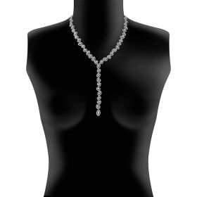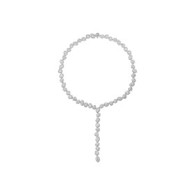 Collier aus 750/- Weißgold mit Diamanten im Navette-Schliff (2,56 ct.) LG, ovalen Diamanten (2,72 ct.) LG, Diamanten im Herz-Schliff (3,09 ct.) LG, Diamanten im Tropfen-Schliff (2,10 ct.) LG,Diamanten im Emerald-Schliff (2,05 ct.) LG und Brillanten (8,43 ct.) LG