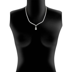 Collier aus 750/- Weißgold mit Brillanten (3,08 ct.) LG, Diamanten im Tropfen- Schliff (1,06 ct.) LG, Diamanten im Emerald-Schliff (16,40 ct.) LG und Brillanten (6,84 ct.) LGLänge 42 cm