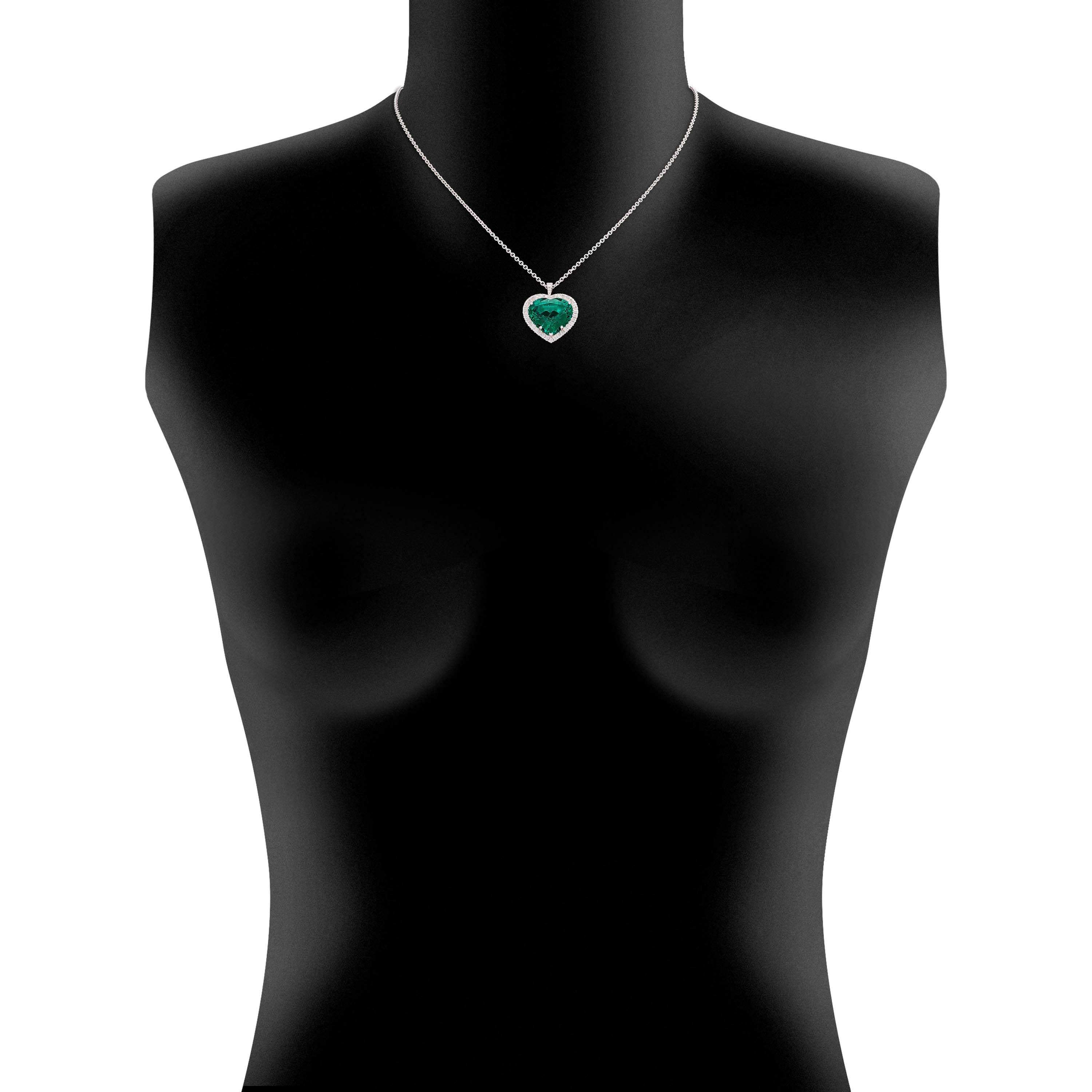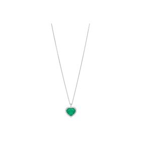 Collier aus 750/- Weißgold mit einem Smaragd im Herz-Schliff (13,00 ct.) LG und Brillanten (0,49 ct.) LGLänge 45 cm