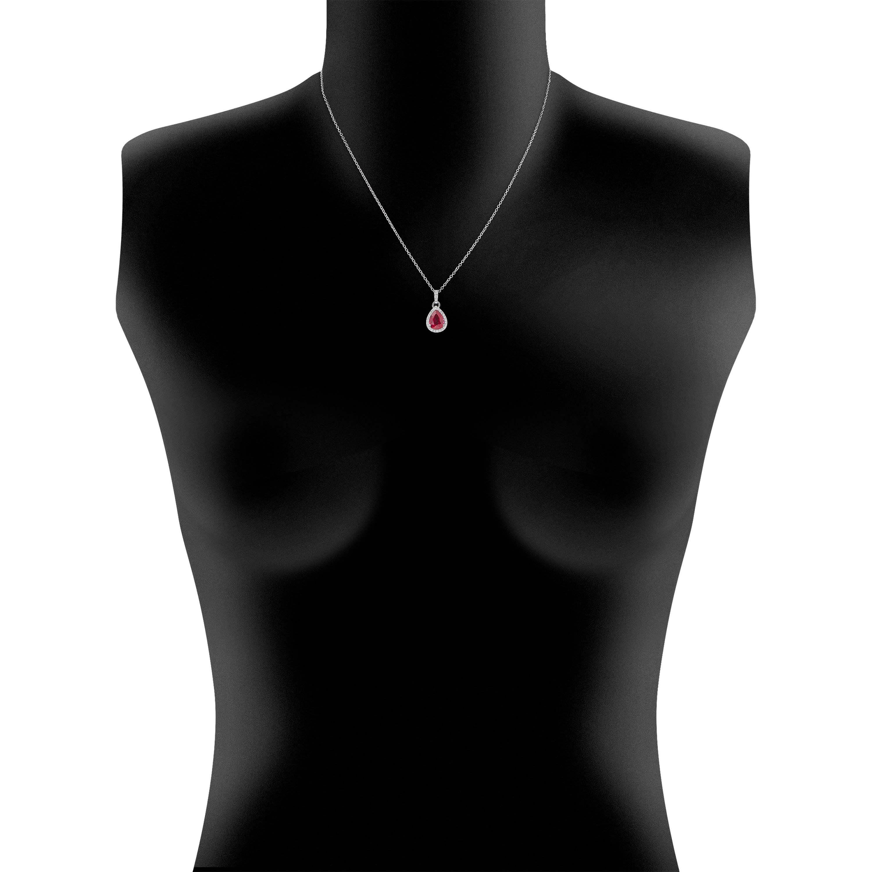 Collier aus 750/- Weißgold mit einem Rubin im Tropfen-Schliff (2,32 ct.) LG und Brillanten (0,15 ct.) LGLänge 45 cm