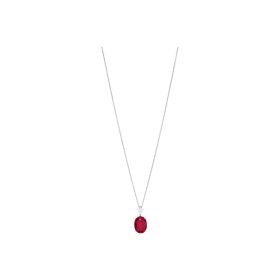 Collier aus 750/- Weißgold mit einem ovalen Rubin (13,26 ct.) LG und einem Diamanten im Trillant-Schliff (0,74 ct.) LGLänge 45 cm