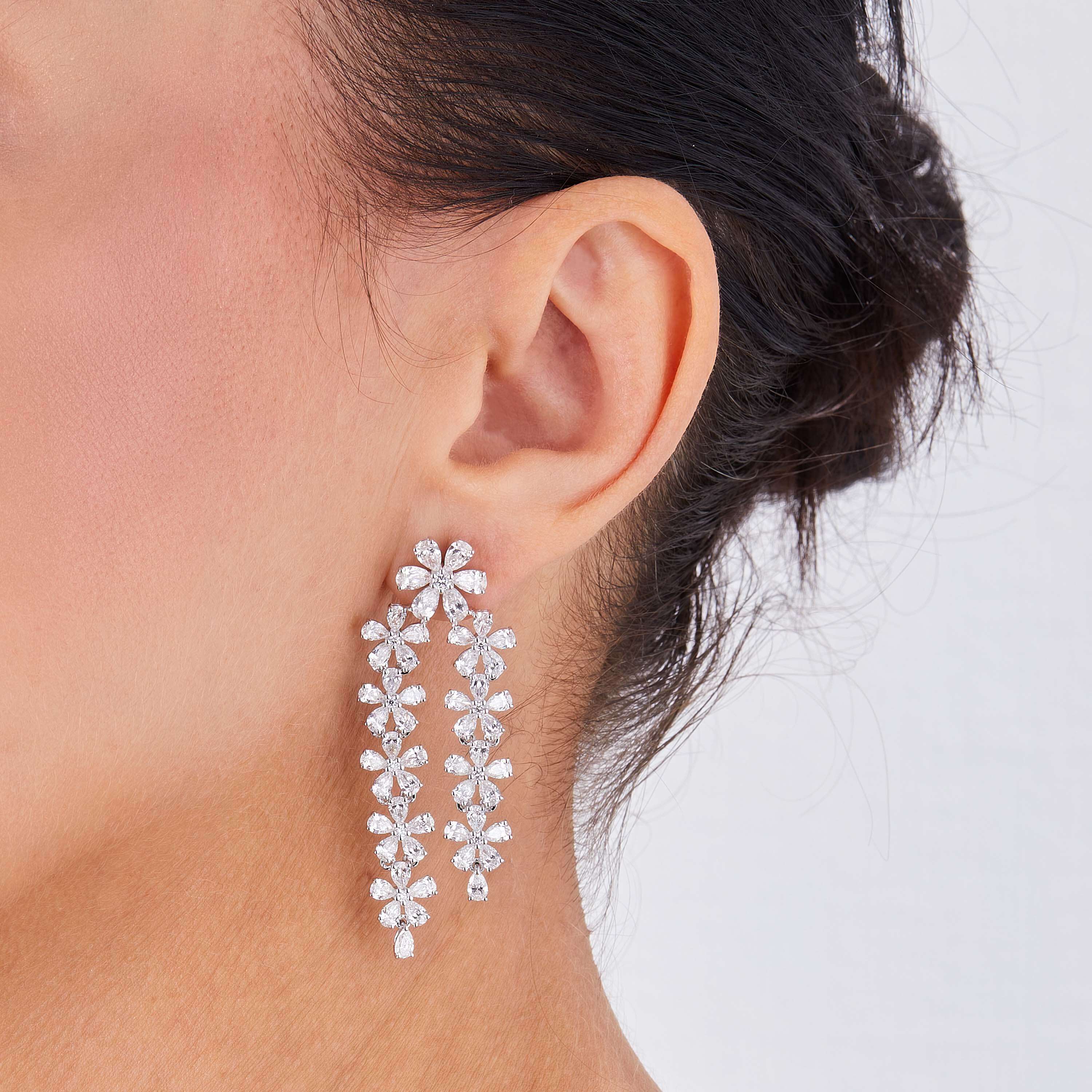 Ohrringe aus 750/- Weißgold mit Diamanten im Tropfen-Schliff (11,06 ct.) LG und Brillanten (0,32 ct.) LG