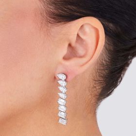 Ohrringe aus 750/- Weißgold mit Diamanten im Emerald-Schliff (8,25 ct.) LG und Diamanten im Tropfen-Schliff (5,73 ct.) LGLänge 4,3 cm