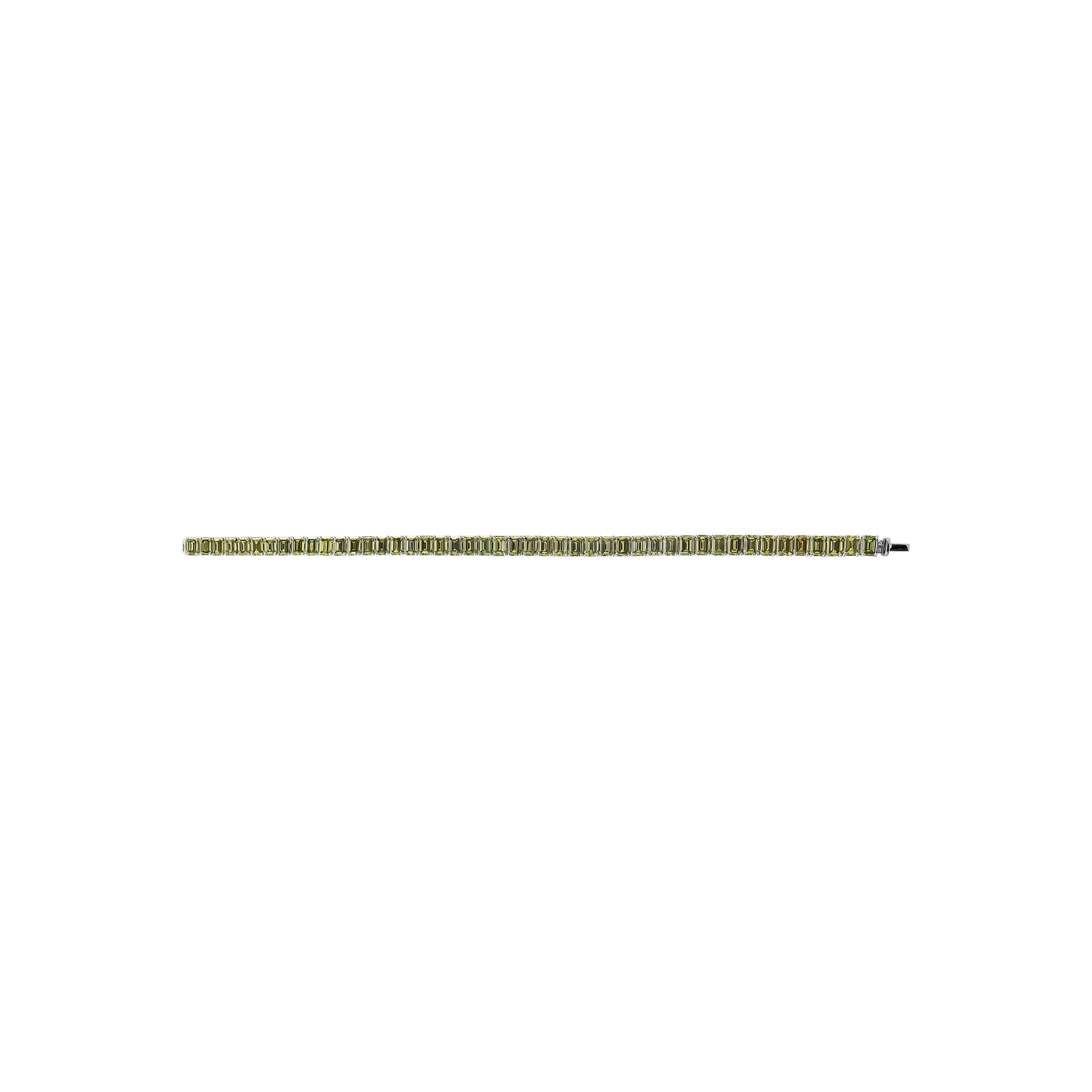 Armband aus 750/- Weißgold mit fancy intense green Diamanten im Emerald-Schliff (23,57 ct.) LGLänge 19 cm