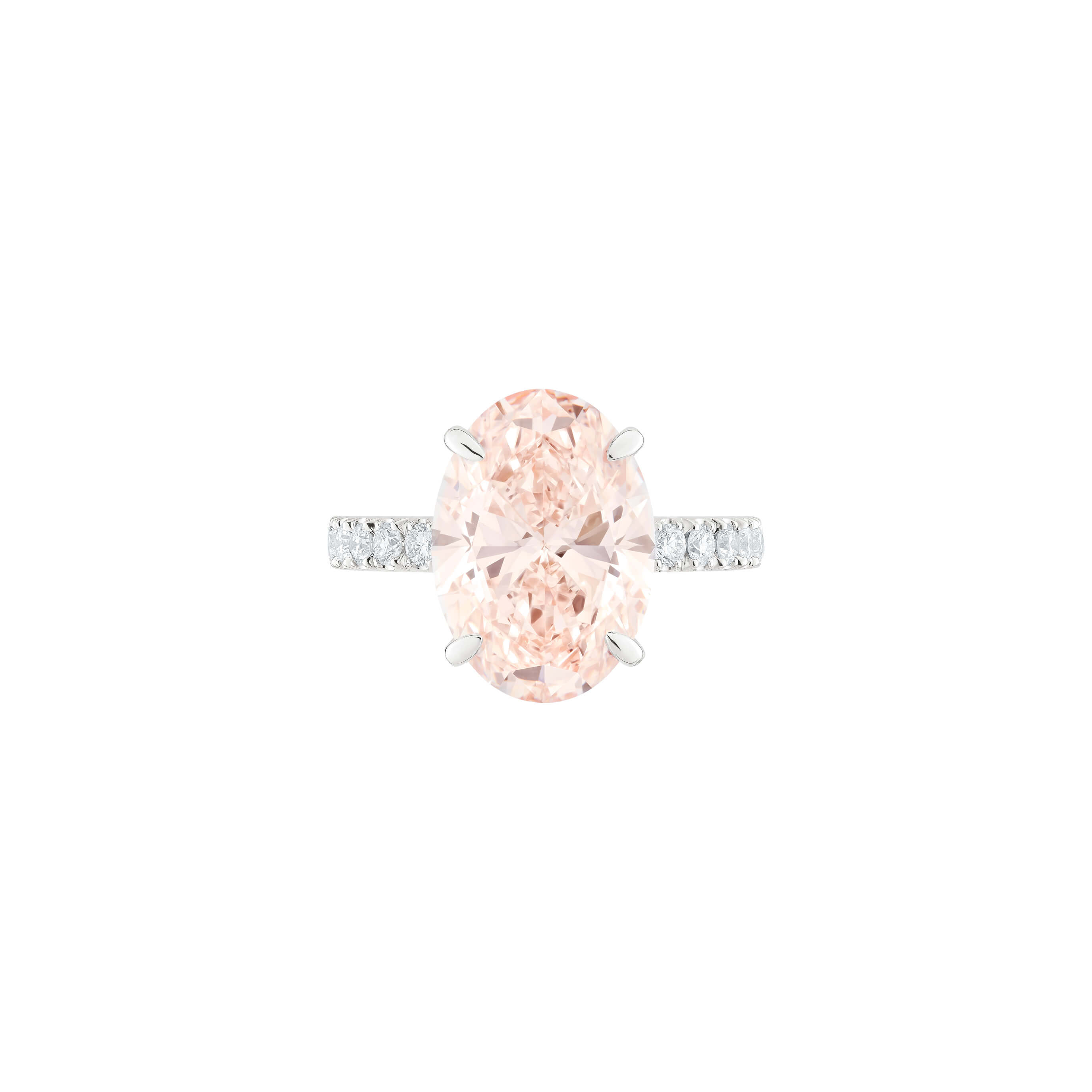 - 1 LG Diamant (7,03 ct.) | Schliff: Oval, Farbe: Fancy intense pink, Reinheit: VS270 LG Diamanten (0,57 ct.) | Schliff: Brillanten, Farbe: F, Reinheit: VS1