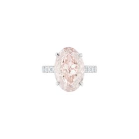 Ring aus 750/- Weißgold mit einem ovalen fancy intense pink Diamanten (10,01 ct.) LG und Brillanten (0,60 ct.) LGProduktspezifikationen