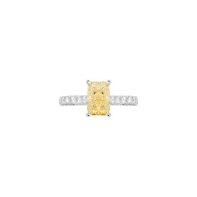 Ring aus 750/- Weißgold mit einem Fancy vivid yellow Diamanten (2,11 ct.) LG und Brillanten (0,85 ct.) LGProduktspezifikationen