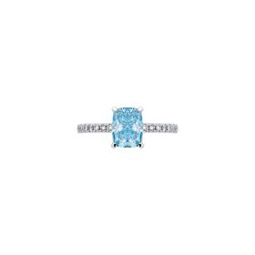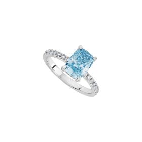 Ring aus 750/- Weißgold mit einem fancy vivid blue Diamanten im Cushion-Schliff (2,13 ct.) LG und Brillanten (0,34 ct. ) LGProduktspezifikationen