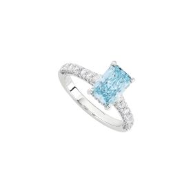 Ring aus 750/- Weißgold mit einem fancy vivid blue Radianten (2,02 ct.) LG und Brillanten (0,84 ct.) LGProduktspezifikationen