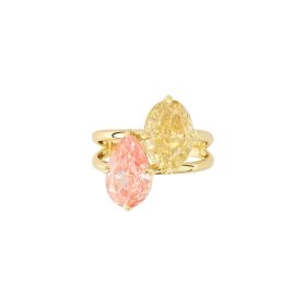 Ring aus 750/- Gelbgold mit einem ovalen Fancy yellow Diamanten (3,63 ct.) LG und einem Fancy light pink Diamanten im Tropfen-Schliff (3,17 ct.) LGProduktspezifikationen